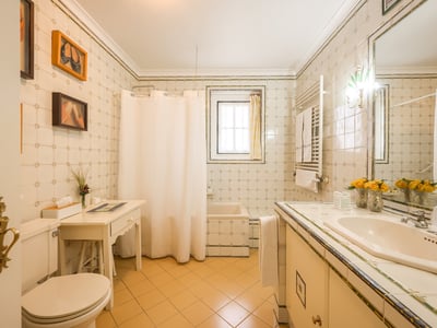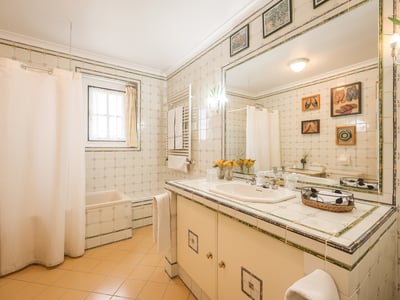 Dispõe de uma ampla casa de banho, com banheira e chuveiro adaptado, numa generosa área e comodidades associadas. Permite acomodar 2 adultos e até mais 2 crianças ou bebés em camas extras ou berços.